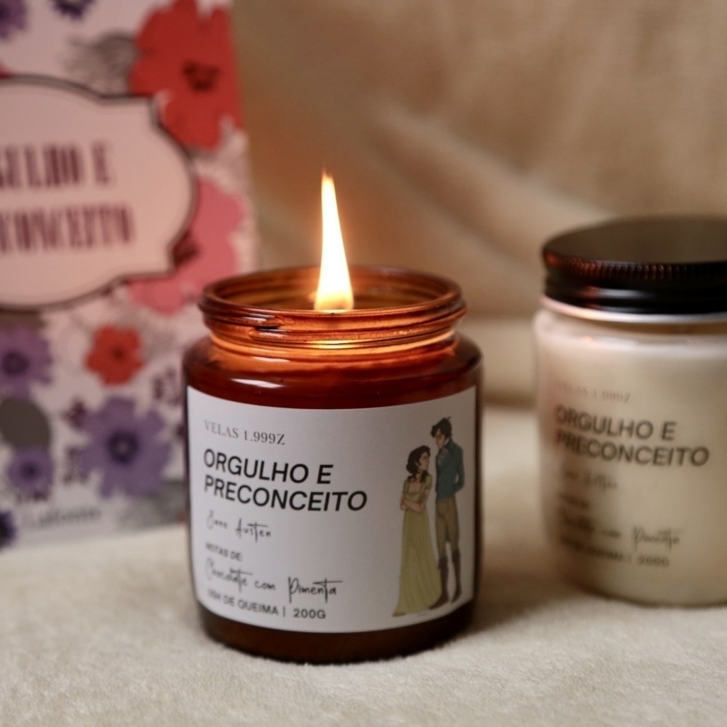 O blend de aromas escolhido para essa vela inspirada em Orgulho e Preconceito foi de: